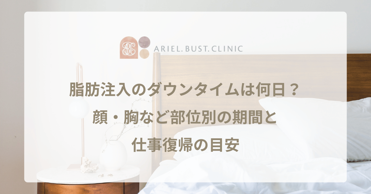 例えば、顔のほうれい線など部分的な注入よりも、胸全体に注入する豊胸術の方がより多くの脂肪を必要とするため、ダウンタイムも長くなるのが一般的です。