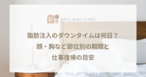 目の下の脂肪注入は、脂肪を採取する部位(太もも、お腹など)も同時に施術するため、2つの部位のダウンタイムを考慮する必要があります。